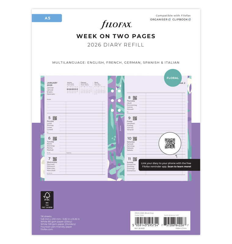 Pacchetto "Illustrated" Floreale A5- Multilingua 2026