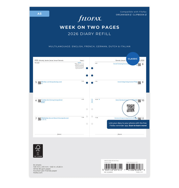 Calend. 1 Settimana su 2 Pagine A5 Multilingua 2026