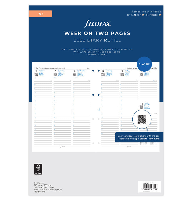 Organizzati i tuoi appuntamenti con il diario settimanale su due pagine e orario in 5 lingue.